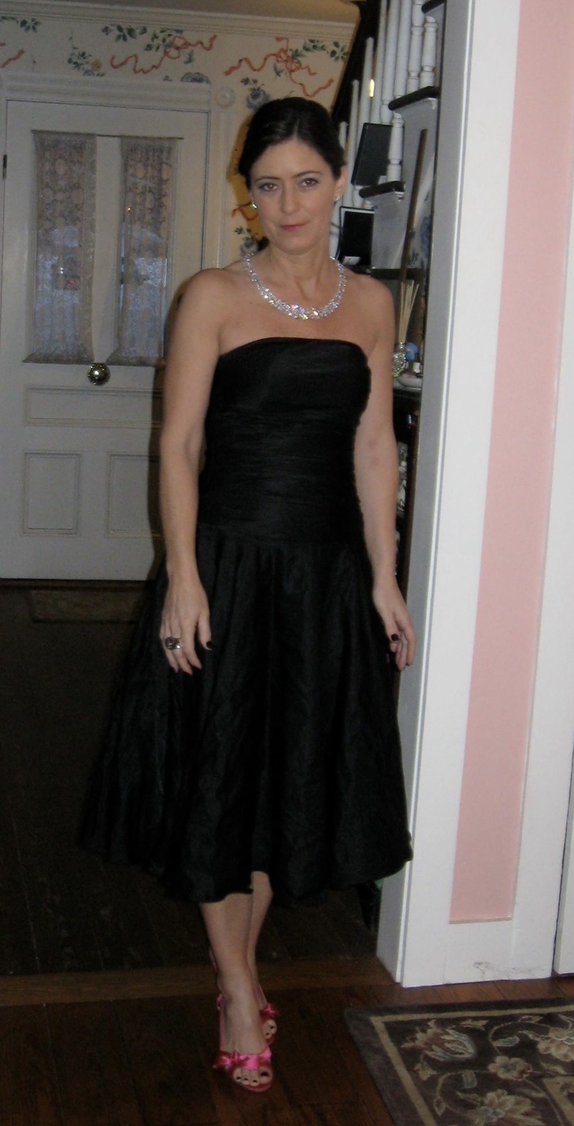 Throwing in a flashback since I was down and out yesterday. Mid day I hit a wall and felt horrible so came home and was in bed by 6:00. It was freezing cold outside so I'm sure I didn't miss much and snuggled into my warm bed was probably the best place to be, even on a Friday night. Well this flash back has a few of my favorite accessories to show off. First of all the shoes!! Check out these fabulous pink satin Kate Spade bow pumps, they are perfection. The black silk, strapless dress is equally as fabulous and makes the pink shoes pop. Also popping is the spectacular necklace... fabulous! It was raffled off at a charity event I attended and sadly, I didn't win it. However, a friend of mine did and let me borrow it, almost as good as owning it. It was designed by a famous jewelry designer that created all the jewelry for the 80's show Dynasty, and while I was at the party a man recognized it and came across the room to tell me how fabulous it was. If your eyes are keen enough to see my ring, it's a large, pink, Swarovski Crystal cocktail ring that always makes a statement. Getting dressed up is so much more than putting on a fancy dress, accessories matter. Even though my only accessory last night was a pair of fury slippers, in my mind I'll pretend this is what I looked like last night...don't you just love make believe?
