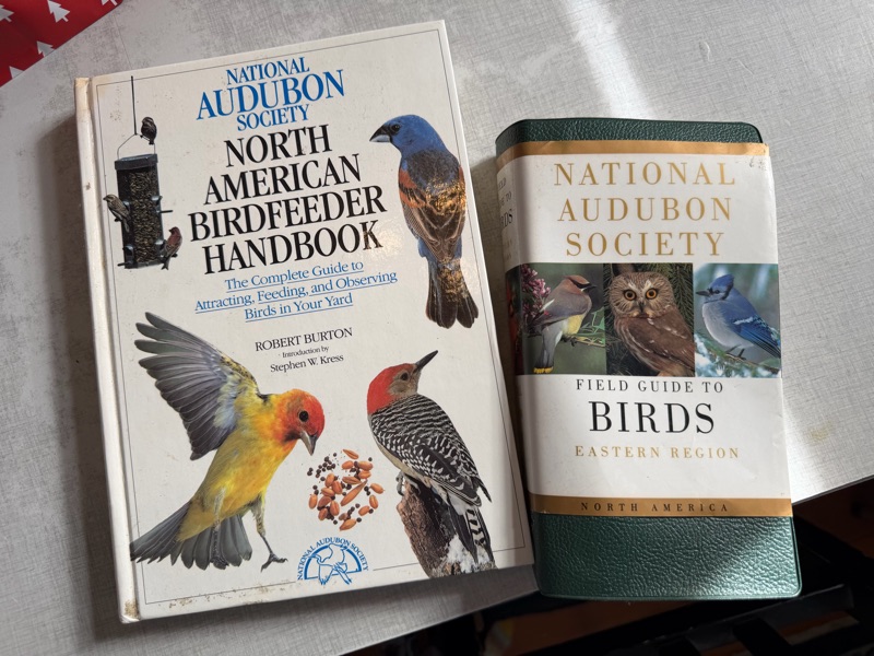 My son has put up a feeder, and when I asked if there was anything I could bring for my visit, he requested one of my Audubon bird books...easy! My video feeder identifies the birds for you and sends a notification telling you which bird is visiting. Of course, it’s currently still in my chicken coop, confusing the AI about what wild birds it could possibly be. Tim and I are just trying to figure out a place to set it up where the squirrels can’t get to it, an impossible task, we’re afraid.