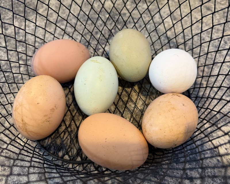 Gotta love chickens, diligent producers even in the worst weather. They aren’t really bothered by the cold, but extreme temperatures either way can be tough. I worry about them getting enough water in the summer and keeping their water ice-free all winter. Egg production goes down when the days are shorter; they need more sunlight to produce at full speed. But since I’m still getting more than enough each day, no complaints here.