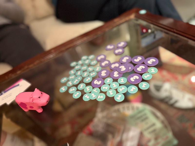 After dinner, we all gathered in the family room (where the basement cat could hear us) and played a few rounds of a fun game, again, my grandson’s choice. Herd Mentality is a funny game where you answer a question and hope your response matches everyone else’s. It’s fun to see how differently people answer simple questions, and even funnier when you realize just how much (or how little) you think alike.