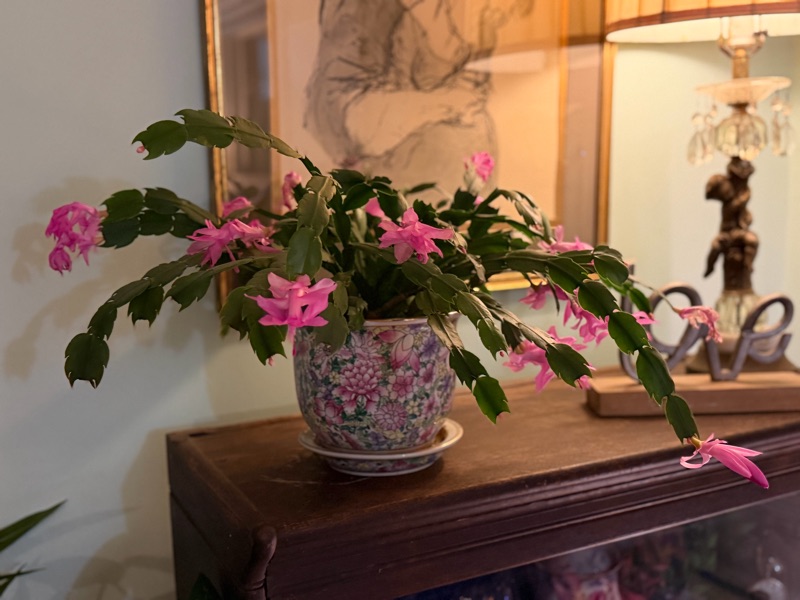 I made my way down to the kitchen, unsure of how long I’d last, but I managed a cup of coffee, got some writing done, and even started a few chores in the laziest fashion. I was thrilled to see my cactus in full bloom, that darn plant surprises me every day! I’ve never had luck growing a Christmas cactus, and right when I was about to give up, this one decided to flourish under my care.