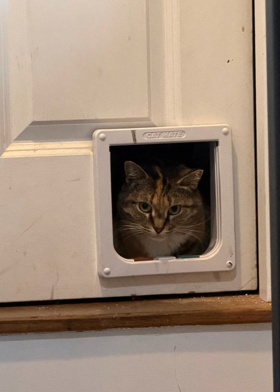 We all need a safe space to hide now and again, peering out at the world from a cozy hiding spot. Our sweet basement cat is growing more confident each day, but she doesn’t roam far from the protection of the closed basement door. We took the flap off the cat door so she can sit and peek out at us, sizing up the room to decide if it’s safe to enter.