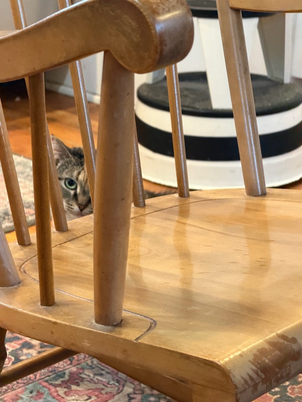 Our sweet basement cat has been venturing out into the kitchen, exploring and expanding her territory. She even comes into the room while I’m sitting, watching me carefully and occasionally coming over to let me pet her. She still runs for cover every time company shows up, so guests may never know I even have a cat!