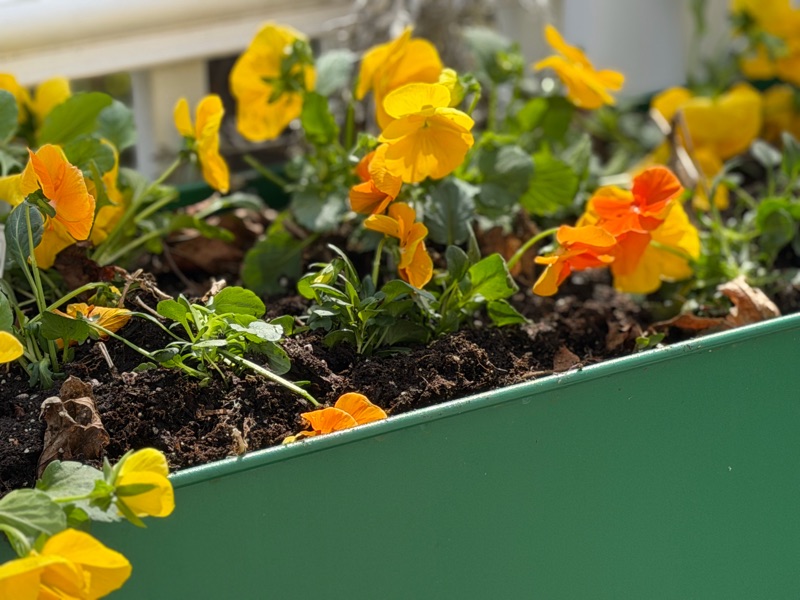 Pansies in my flower box, now that’s an instant smile! I love looking out the window and seeing bright yellow, orange, and green. Although, choosing a color theme is always a challenge. I typically gravitate toward pinks and purples, but I love them all so much that I usually have to make a few different planters just to enjoy every shade.